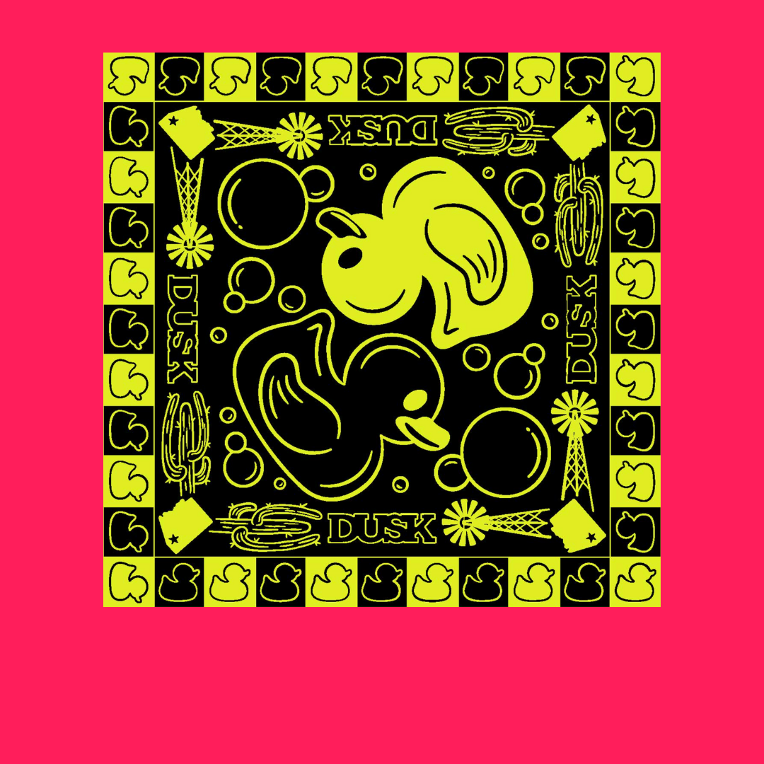 Level up your festival fit long after the lights fade. The DUSK 2025 bandana blends street-art lines, rubber-duck mischief, and neon desert icons into one eye-catching accessory. Perfect for your backpack, your dog, your festival wall, or your next secret-stage adventure. #DUSK25